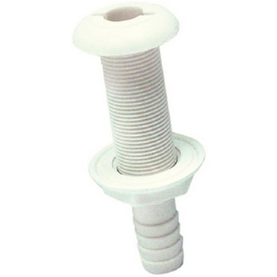 Plástico branco de alto impacto moldado extra longo com flange largo. Projetado para a instalação onde as popas espessas ou paredes laterais exigem uma rosca de até 63 mm de comprimento. Não recomendado para uso abaixo da linha de água.