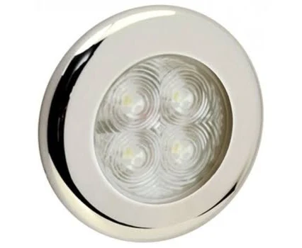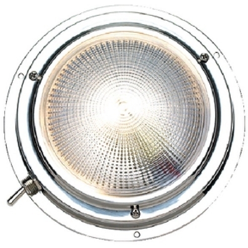 Luz de cabine em aço inox altamente polida. Dois recursos de iluminação: branco brilhante e vermelho. A luz vermelha é ideal para uso noturno. Lente de vidro clara resistente. Interruptor de alavanca incorporado em aço inox. 15W / 12V. Lâmpada CP 12V-6 fornecida. Aperta com parafusos # 6.